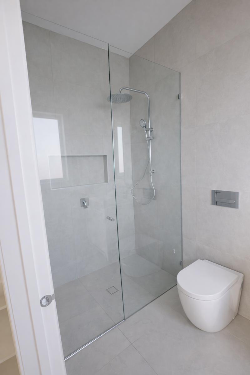 Fixed panel shower screens provide a minimalist design, creating an open and spacious feel while maintaining functionality. A fixed glass shower panel is a single frameless glass panel installed to enclose a shower area without any moving parts, providing a seamless and stylish finish.
